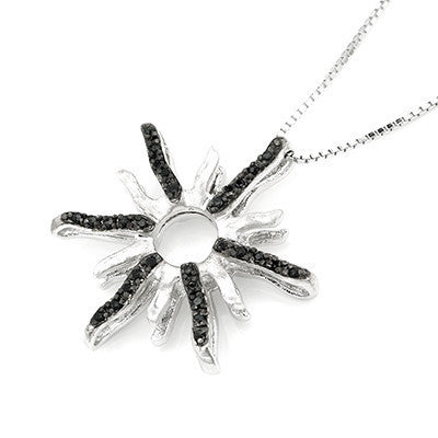 Sunflower Pave Style Black CZ Crystal Accents 925 Sterling Silver Pendant (16')